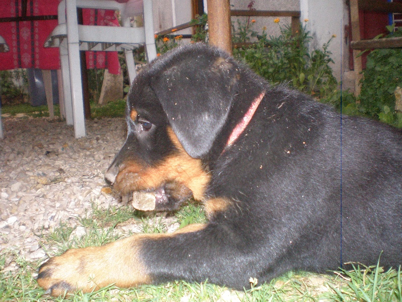 18 mois - DCC. Tête de bonne forme et expression. Oeil exc. Ligne de dessus régulière, ossature exc, TB poitrine, Exc construction d'ensemble, couverture exc, feux exc, manque un peu de sous poil. Exc mouvement, Exc comportement.